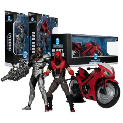 Red Hood’s Sportsbike (Red Hood: Outlaw) Vehicle/Red Hood (Dawn of DC) 7″ Figure/Cyborg (DC Rebirth) 7″ Figure Bundle (3)