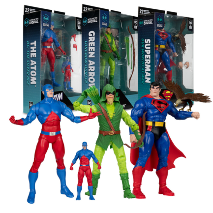 The Atom (DC: The Silver Age)/Green Arrow (Longbow Hunter)/Superman (Our Worlds at War) 7″ Figures w/McFarlane Toys Digital Collectibles Wave 2 Phygital Bundle (3)