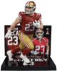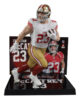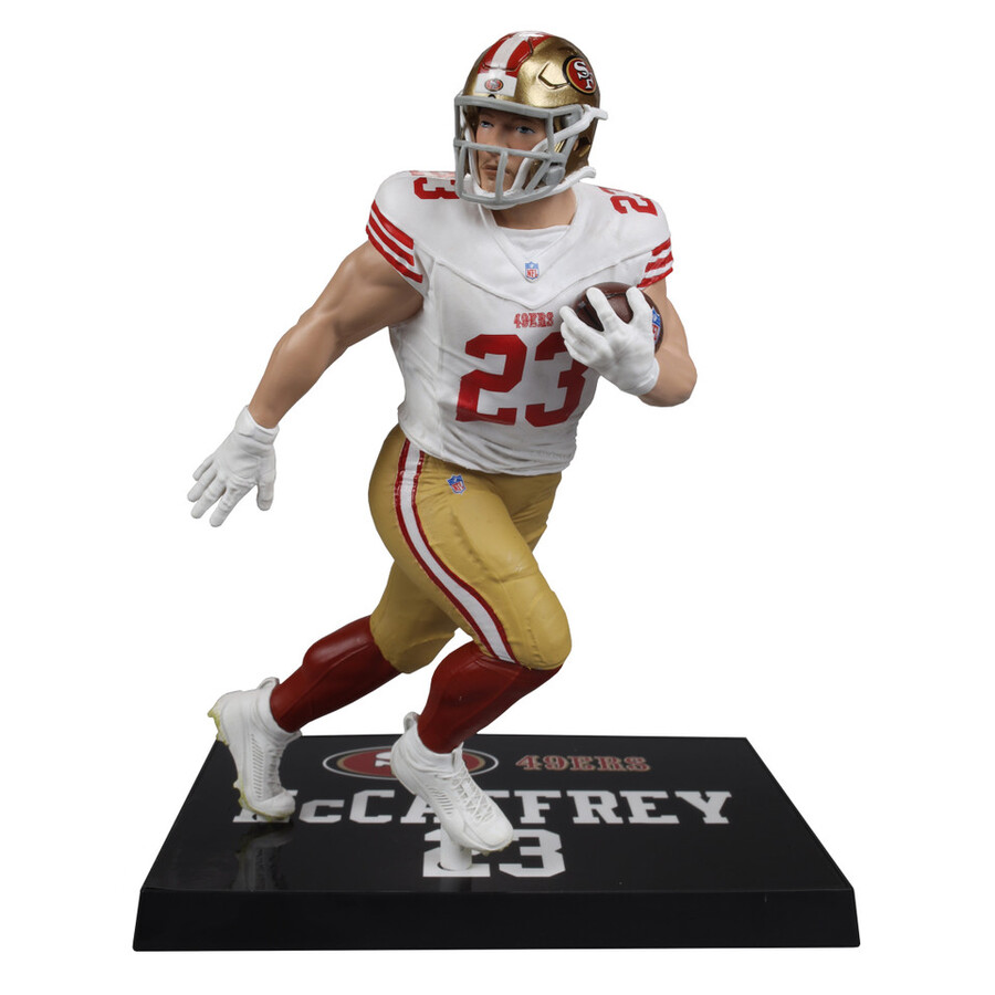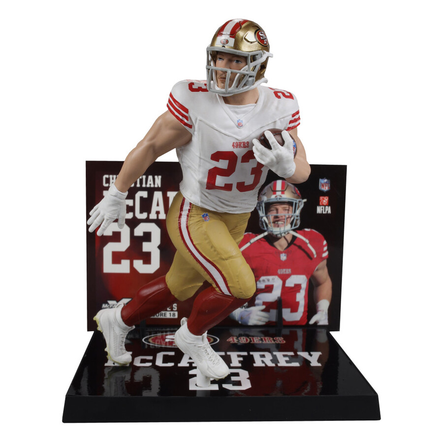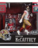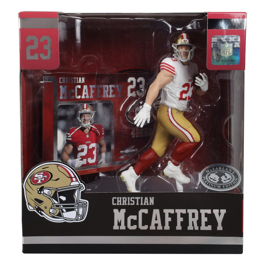 Includes 1 regular figure and 1 Platinum Edition CHASE figure. Known for his versatility, McCaffrey is a dual threat, excelling both as a rusher and a receiver. He played college football at Stanford, where he was a standout athlete, finishing as a runner-up for the Heisman Trophy in 2015. Drafted by the Carolina Panthers in 2017 as the 8th overall pick, he quickly became one of the NFL’s top players. His quickness, agility, and ability to contribute in various offensive schemes set him apart. In 2019, he became the third player in NFL history to record 1,000 rushing yards and 1,000 receiving yards in a single season. McCaffrey was traded to the 49ers in 2022 and was named Offensive Player of the Year in 2023. He already has over 10,000 years from scrimmage and 81 combined TDs.