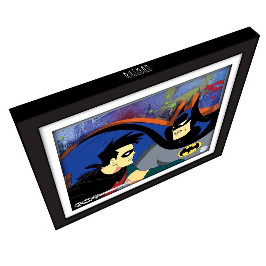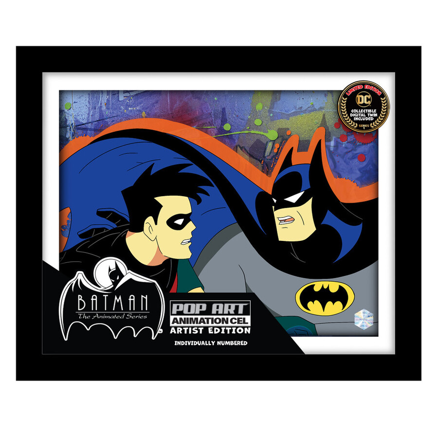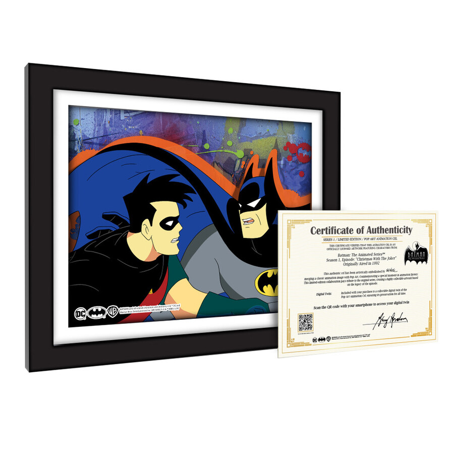 Product Description: Immerse yourself in the world of Batman: The Animated Series with our Exclusive Limited Edition Pop Art Animation Cel Collectibles. Each cel captures a memorable scene from the series, featuring a character cel from the episode and a background that has been artistically enhanced by a renowned artist. This collectible includes a digital twin, accessible via a QR code on the Certificate of Authenticity, combining physical and digital memorabilia. Perfect for fans and collectors, the cel arrives in a display-ready frame-style box with a holographic security seal for authenticity. Own a unique piece of animation history today! Components: (1) (8×10″) Animation Cel