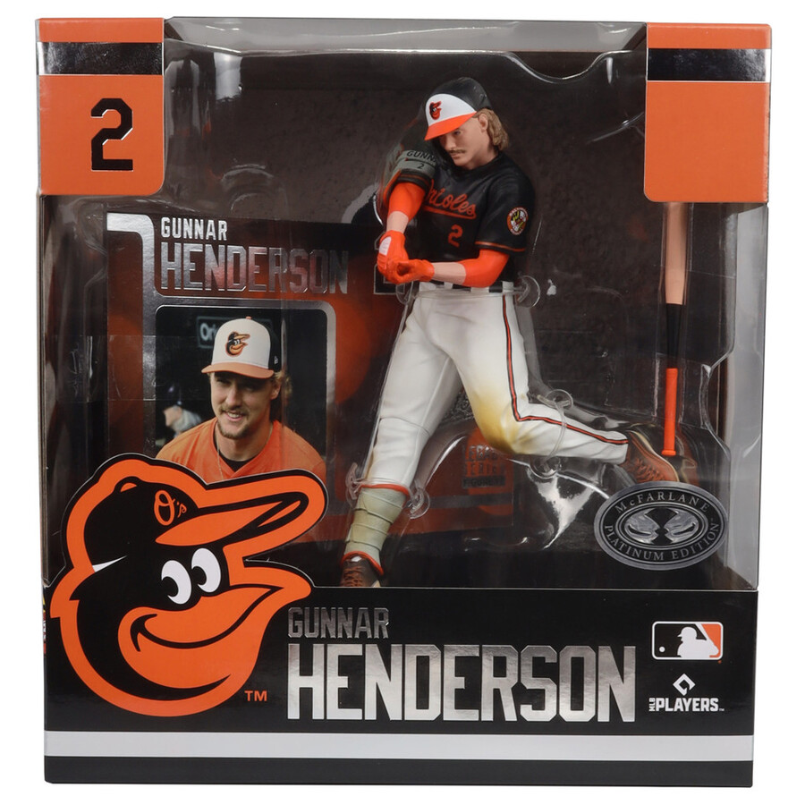 Gunnar Henderson (Baltimore Orioles) Factory Sealed Case – Includes 5 regular figures and 1 Platinum Edition CHASE figure.