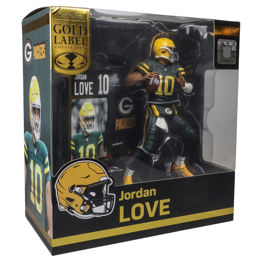 Jordan Love (Green Bay Packers) 7″ Posed Figure. Limited Edition Color Rush Gold Label Exclusive.
