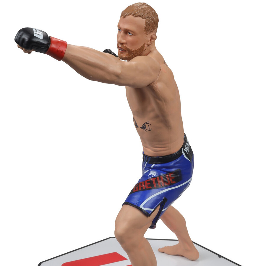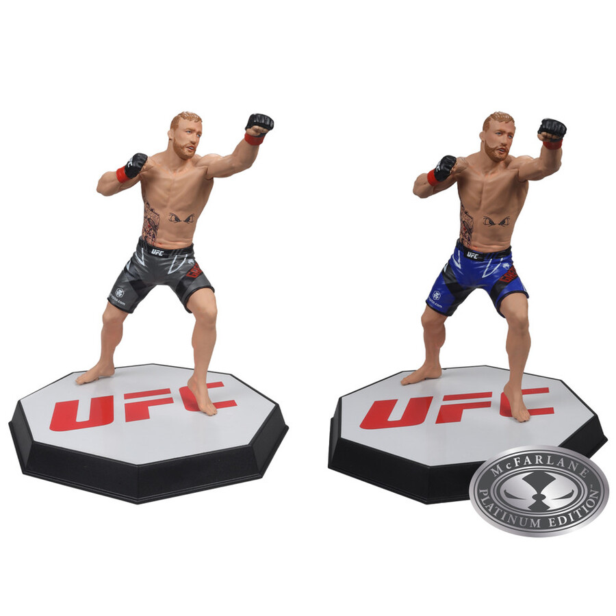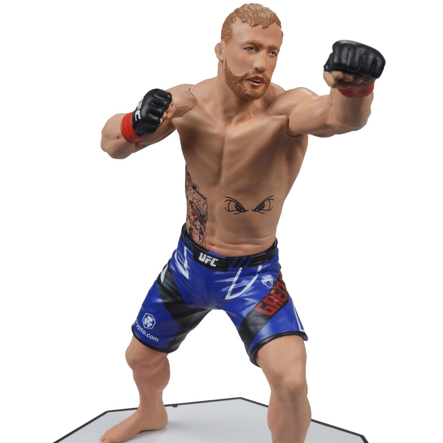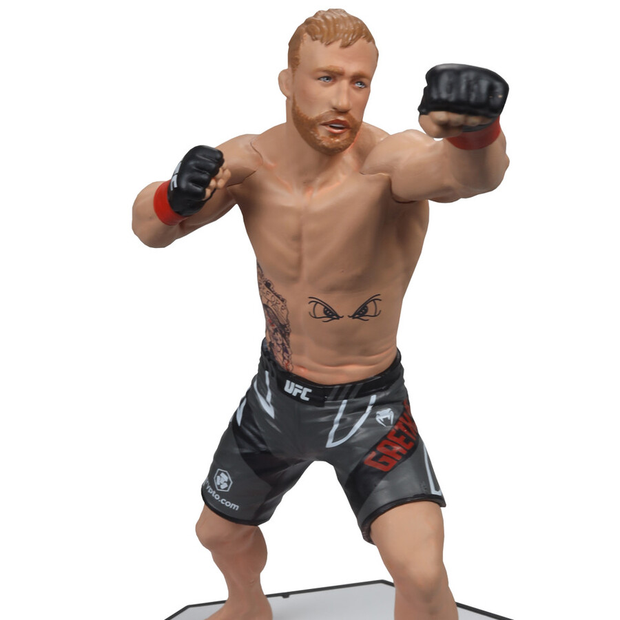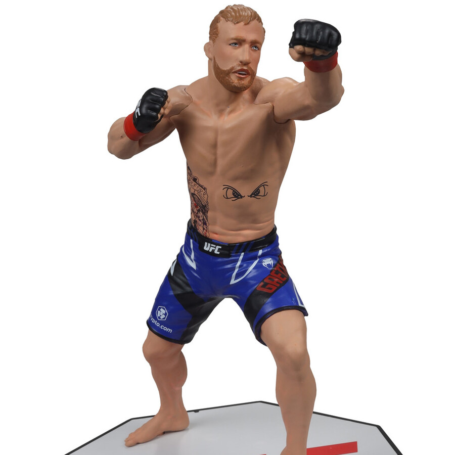 Includes 1 regular figure and 1 Platinum Edition CHASE figure. Justin Gaethje (UFC) 7″ Figure. Justin Gaethje is an American professional mixed martial artist who competes in the lightweight division of the Ultimate Fighting Championship (UFC). Known for his aggressive fighting style, powerful striking, and remarkable durability, Gaethje has earned the nickname “The Highlight” due to his exciting and action-packed fights. Before joining the UFC, he was the World Series of Fighting (WSOF) Lightweight Champion. Gaethje has been involved in several high-profile bouts and is celebrated for his ability to deliver thrilling performances, making him a fan favorite in the sport.