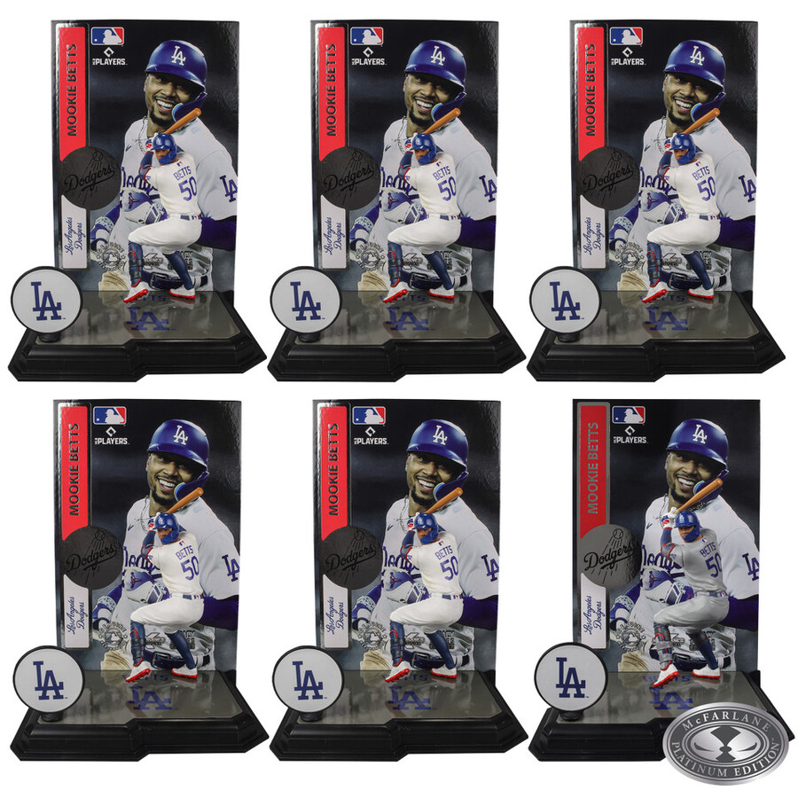 Mookie Betts (Los Angeles Dodgers) 7″ Posed Figure- Includes 5 regular figures and 1 Platinum Edition CHASE figure. Mookie Betts is widely regarded as one of the premier players in the league, known for his exceptional hitting, base running, and defensive skills. Betts has won multiple Gold Glove Awards for his defensive prowess and has been named an All-Star numerous times. He previously played for the Boston Red Sox, where he won the American League MVP award in 2018, and he played a significant role in helping the Red Sox win the World Series that same year. Mookie Betts is an outfielder for the Los Angeles Dodgers of Major League Baseball. He continues to thrive with his new team, Los Angeles Dodgers and has a promising career with his new team.