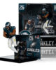 Saquon Barkley is a running back for the Philadelphia Eagles, joining the team in 2024 after six seasons with the New York Giants. In his debut season with the Eagles, he led the NFL with 2,005 rushing yards and 13 touchdowns, earning his third Pro Bowl selection and being named NFL Offensive Player of the Year. Barkley played a pivotal role in the Eagles’ Super Bowl LIX victory, contributing 57 rushing yards and 40 receiving yards in the championship game. His performance set a new NFL record for total scrimmage yards in a single season, including playoffs, with 2,857 yards. In March 2025, Barkley signed a two-year, $41.2 million contract extension with Philadelphia, solidifying his status as a cornerstone of the Eagles’ offense.
