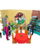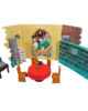 - Villain’s Lair includes lair walls, bookshelf, file cabinet, umbrella vase holder, umbrella, table with four chairs, table with radar, milk with saucer, and Hecate the cat.
